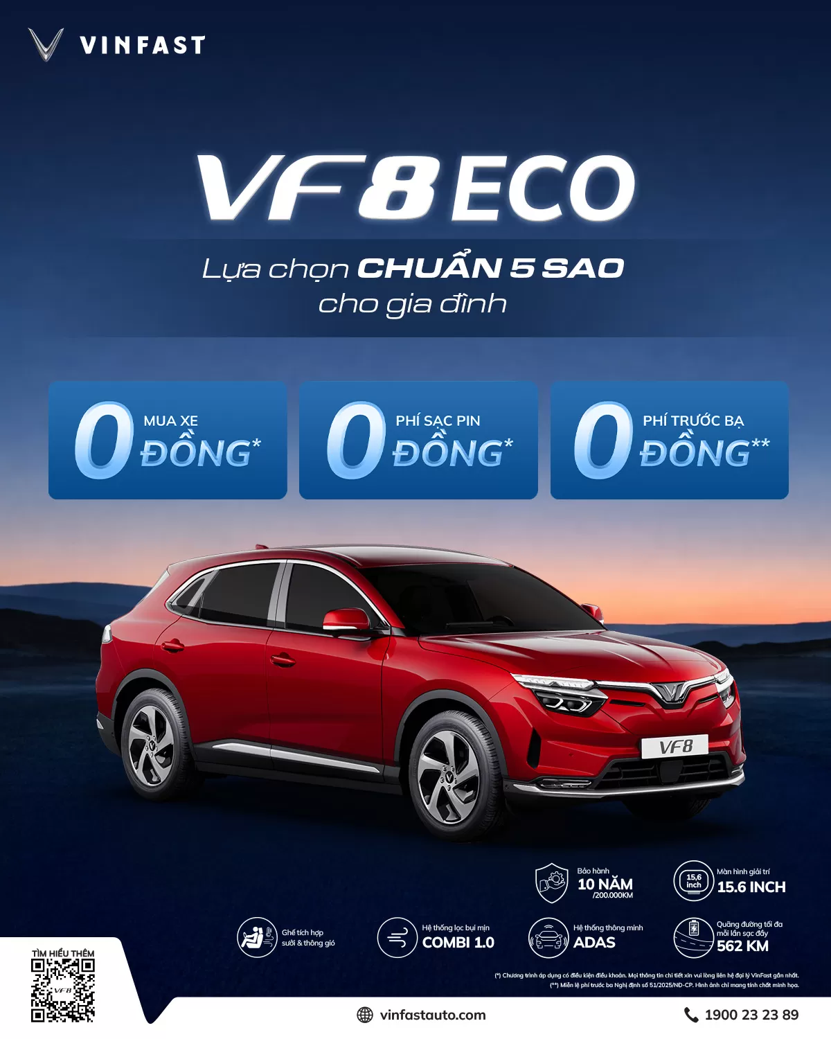 Cơ hội “vàng" để sở hữu ngay VF 8 Eco - lựa chọn chuẩn 5 sao cho gia đình với hàng loạt chính sách ưu đãi hấp dẫn: